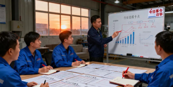 每天下班前花20 分钟开短会,梳理当天执行问题,如 “某工序合格率低” 当场调整操作方法;无法即时解决的记录在 “问题台账”,明确责任人跟进,不让问题 “过夜”。