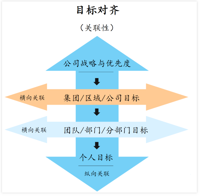 通过OKR取得共识方式是“360度对齐”——强调横向、纵向的目标对齐。
